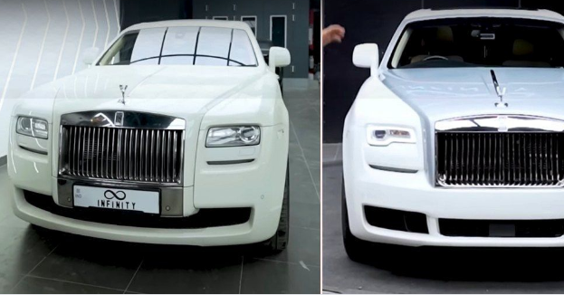 Theo Ajju, chủ garage độ chiếc xe, chiếc Ghost đã được dán sẵn film bảo vệ sơn (PPF), nhưng thi công kém: các mép dán lộ vết cắt, nhiều góc bị xước và lớp film rẻ tiền đã chuyển sang màu vàng.