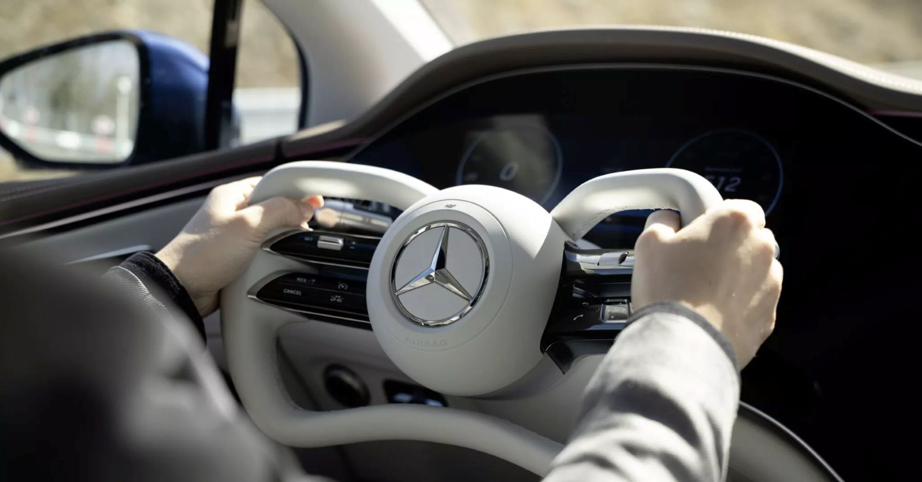 Vô lăng dạng càng cua được thử nghiệm trên mẫu Mercedes-EQS. Ảnh: Mercedes-Benz