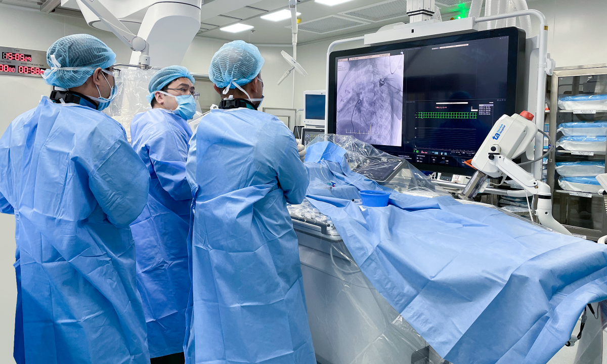 Bác sĩ Phúc (giữa) thông tim cho bệnh nhi. Ảnh: Bệnh viện Đa khoa Tâm Anh