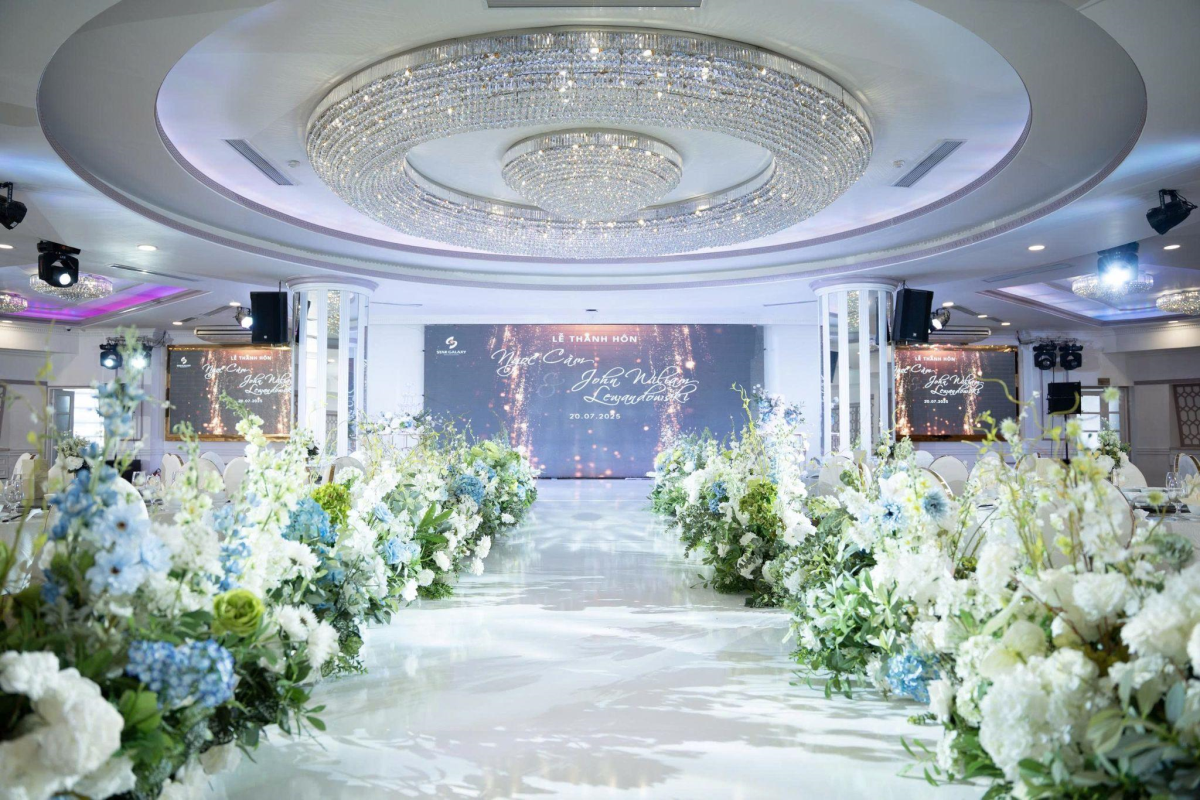 Ba sảnh tiệc cưới hiện đại với sức chứa khác nhau, phục vụ đa dạng quy mô sự kiện. Cụ thể, sảnh tầng 1 phù hợp tiệc quy mô nhỏ 100-200 khách. Sảnh tầng 3 và 4 đáp ứng tốt các tiệc 300-430 khách. Đi kèm còn có hệ thống âm thanh, ánh sáng, màn LED hiện đại, giúp các đôi thoải mái sáng tạo nghi thức cưới như lễ thành hôn, cắt bánh, nâng ly rượu vang…