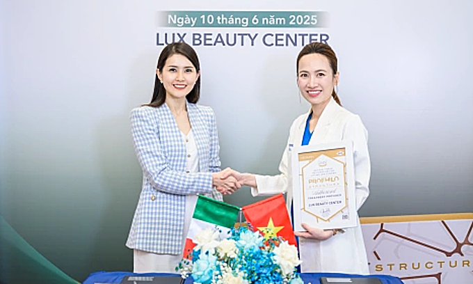 Bác sĩ Tô Lan Phương và bà Glynise thực hiện nghi thức chuyển giao công nghệ mới. Ảnh: Lux Beauty Center
