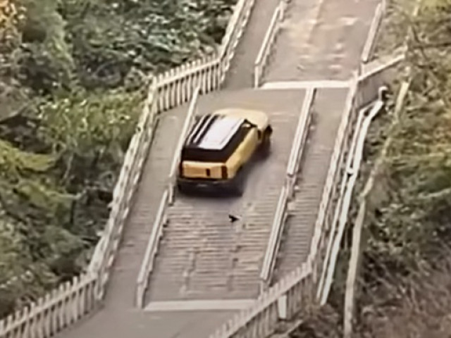 Tuy nhiên, màn trình diễn của Chery lại diễn ra theo kịch bản không như mong muốn. Theo đoạn video được ghi lại tại hiện trường, chiếc Fulwin X3L đang di chuyển lên dốc thì bất ngờ phát ra tiếng nổ lớn. Một bộ phận màu đen rơi khỏi gầm xe, khiến phương tiện mất lái, lệch sang phải rồi đứng khựng lại. Ngay sau đó, xe trượt lùi xuống bậc thang, cọ mạnh vào lan can và làm gãy một phần hàng rào bảo vệ, suýt rơi xuống khu vực sườn núi bên dưới.