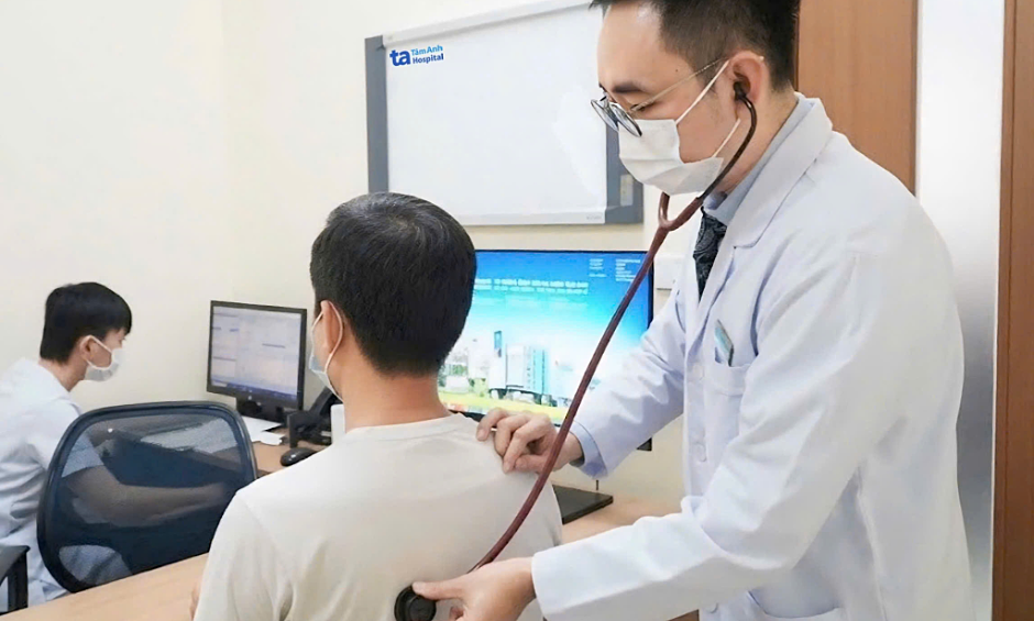 Bác sĩ Hải kiểm tra sức khỏe cho anh Lâm trong lần tái khám. Ảnh: Bệnh viện Đa khoa Tâm Anh