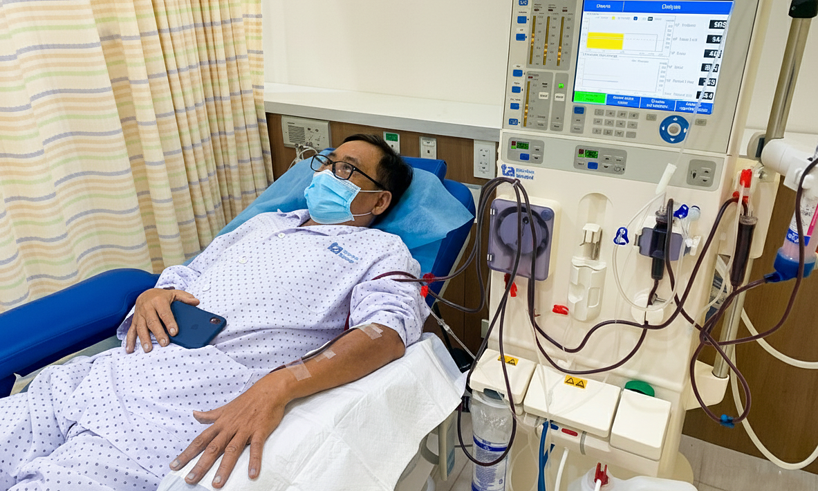 Ông Bình đang chạy thận tại Bệnh viện Đa khoa Tâm Anh TP HCM. Ảnh: Bệnh viện cung cấp