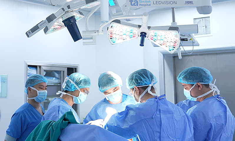Êkíp bác sĩ loại bỏ các hạt tophi gây cản trở vận động, thay thế khớp gối đã tổn thương bằng loại khớp nhân tạo có bản lề, dành riêng cho bệnh nhân có các biến dạng khớp nghiêm trọng. Hậu phẫu, anh Tiến tiếp tục truyền thuốc ổn định nồng độ hormone tuyến thượng thận trong 2 ngày, sau đó duy trì uống thuốc hormone thay thế.