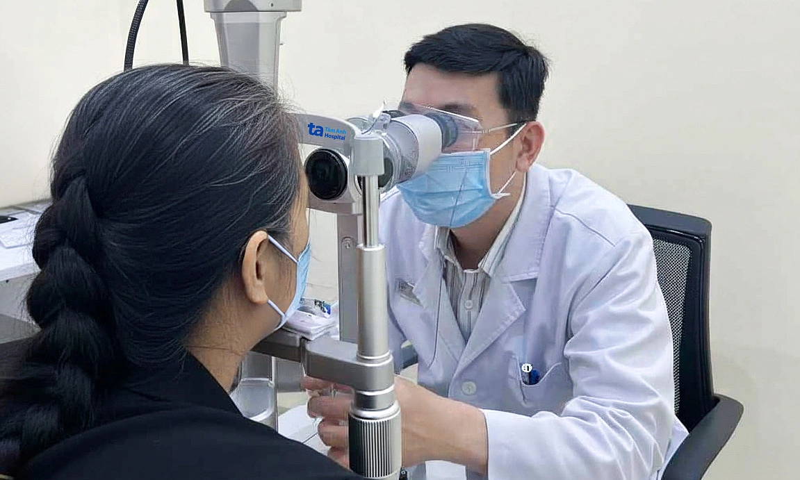 Bà Thúy tái khám thị lực sau điều trị. Ảnh: Bệnh viện Đa khoa Tâm Anh