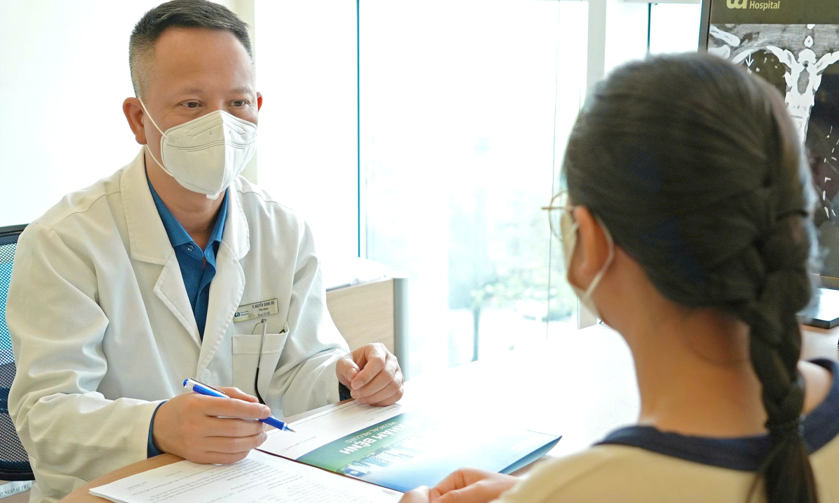 Bác sĩ tư vấn cho bệnh nhân bị ho do kích ứng. Ảnh minh họa: Bệnh viện Đa khoa Tâm Anh