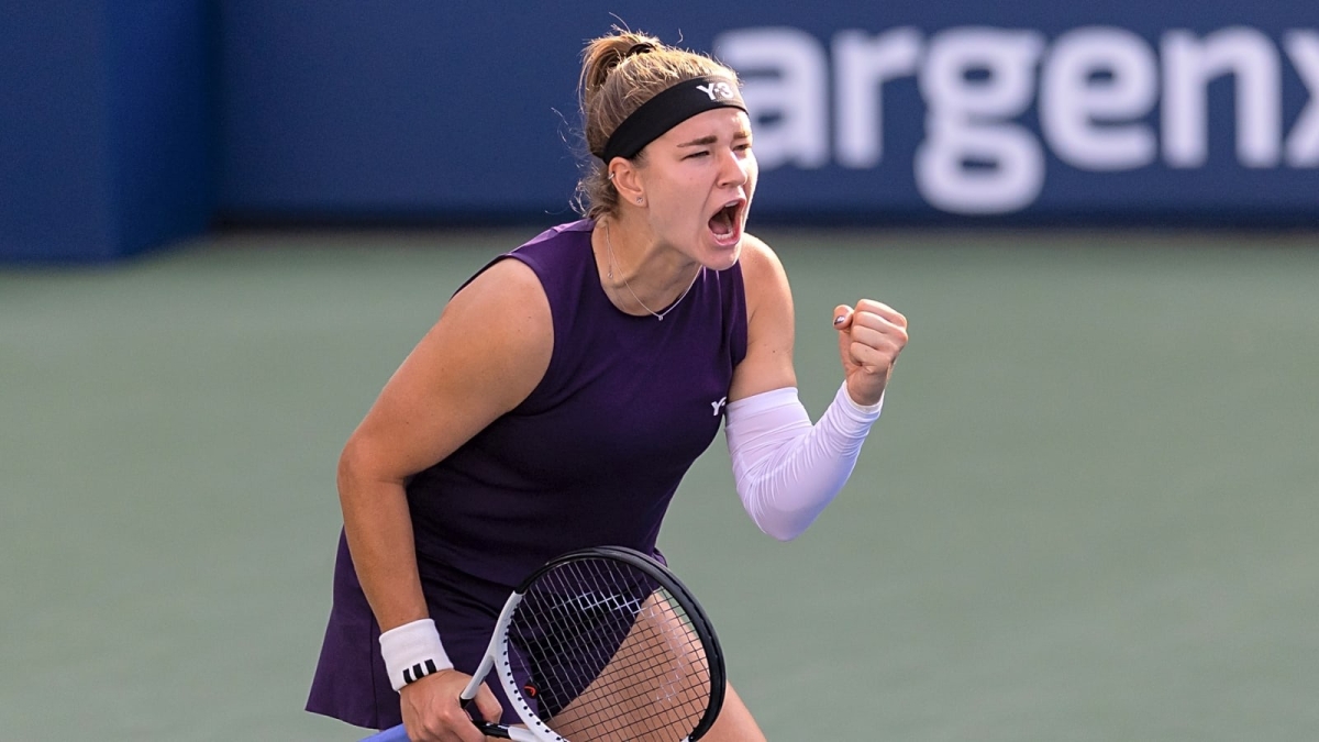 Muchova mừng một điểm thắng trong trận gặp Cirstea, ở vòng hai Mỹ Mở rộng tại tổ hợp Flushing Meadows, New York hôm 29/8. Ảnh: Reuters