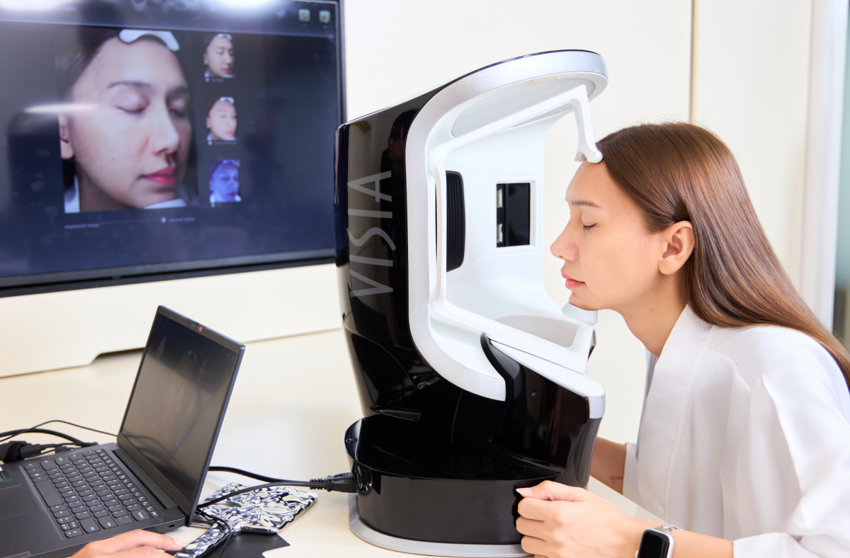 Khách hàng được soi da bằng hệ thống Visia. Ảnh: Linh Anh Premium