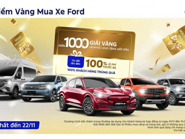 Ford Việt Nam và hệ thống Đại lý trên toàn quốc triển khai chương trình ưu đãi đặc biệt “Thời Điểm Vàng Mua Xe Ford”, mang đến cơ hội sở hữu xe Ford cùng nhiều phần quà giá trị. Chương trình diễn ra từ ngày 01/11 đến 15:00 ngày 22/11/2025 áp dụng cho tất cả các dòng xe Ford với tổng giá trị giải thưởng lên đến hơn 7 tỷ đồng.