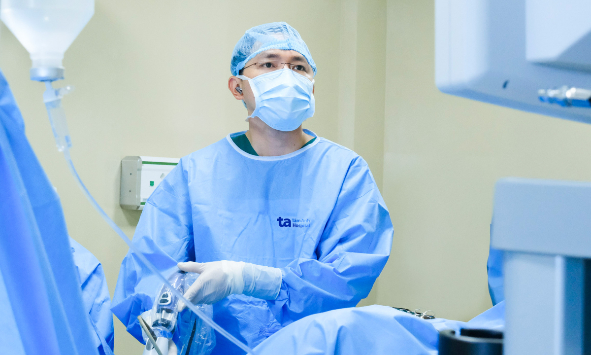 Bác sĩ Đạt thực hiện liệu pháp Rezum thu nhỏ tuyến tiền liệt cho ông Nguyên. Ảnh: Bệnh viện Đa khoa Tâm Anh