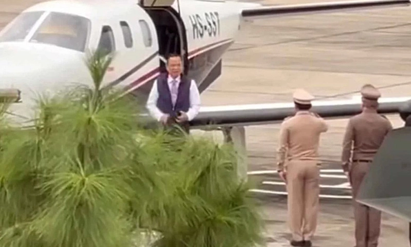 Thủ tướng Anutin Charnvirakul đến sân bay Loei hôm 30/9. Ảnh chụp màn hình