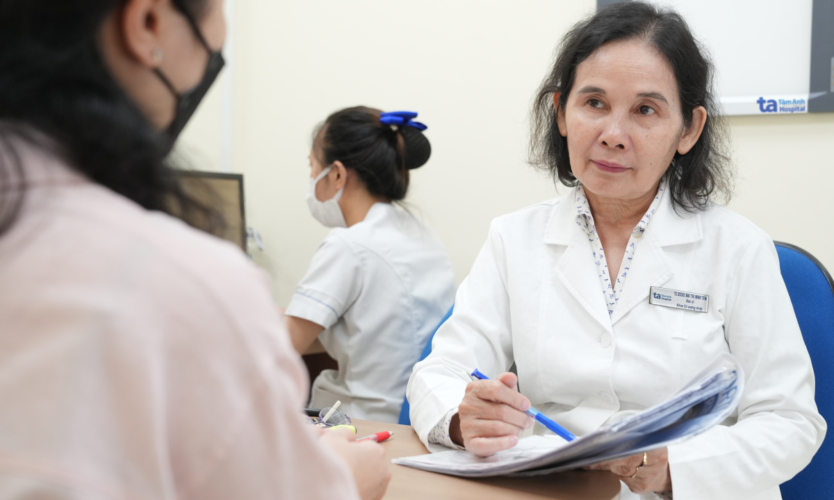 Bác sĩ tư vấn cho bệnh nhân thừa cân bị thoái hóa khớp. Ảnh: Bệnh viện Đa khoa Tâm Anh