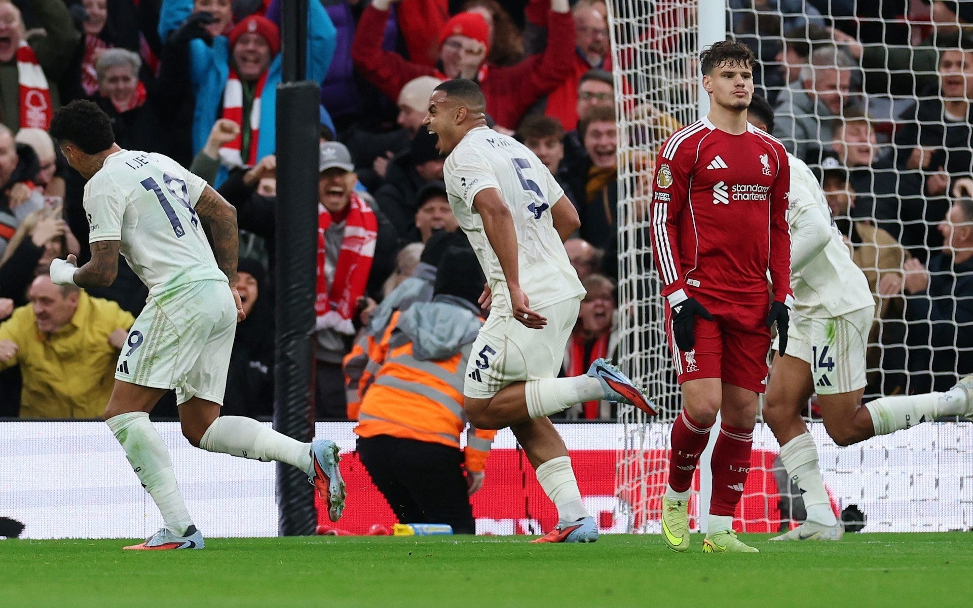 Phút 78, Hutchinson đón bóng dài bên cánh phải, đột phá vào khu cấm địa và loại bỏ Robertson rồi thực hiện cú đá trái phá ở góc hẹp, khiến Alisson không thể bắt dính. Đội trưởng Gibbs-White xuất hiện ung dung đá bồi thành bàn, ấn định chiến thắng 3-0.