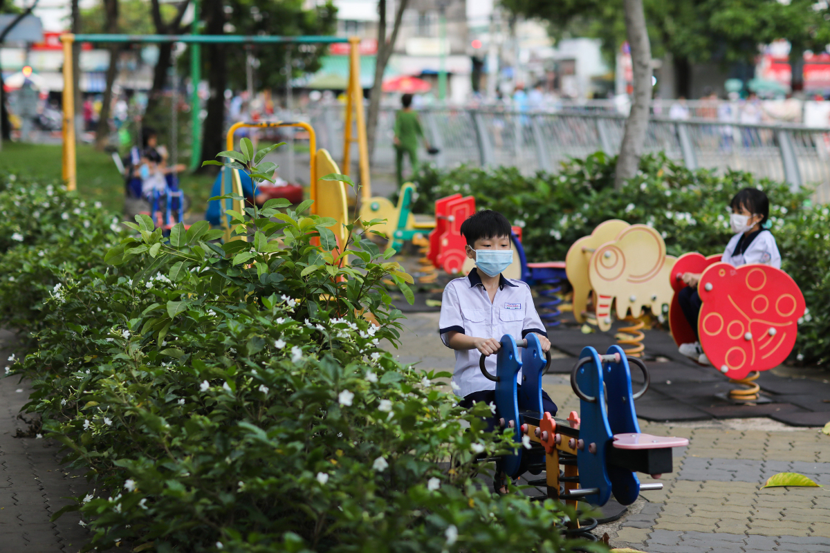 Trẻ vui chơi, vận động thể dục chơi tại công viên ở TP HCM. Ảnh: Quỳnh Trần