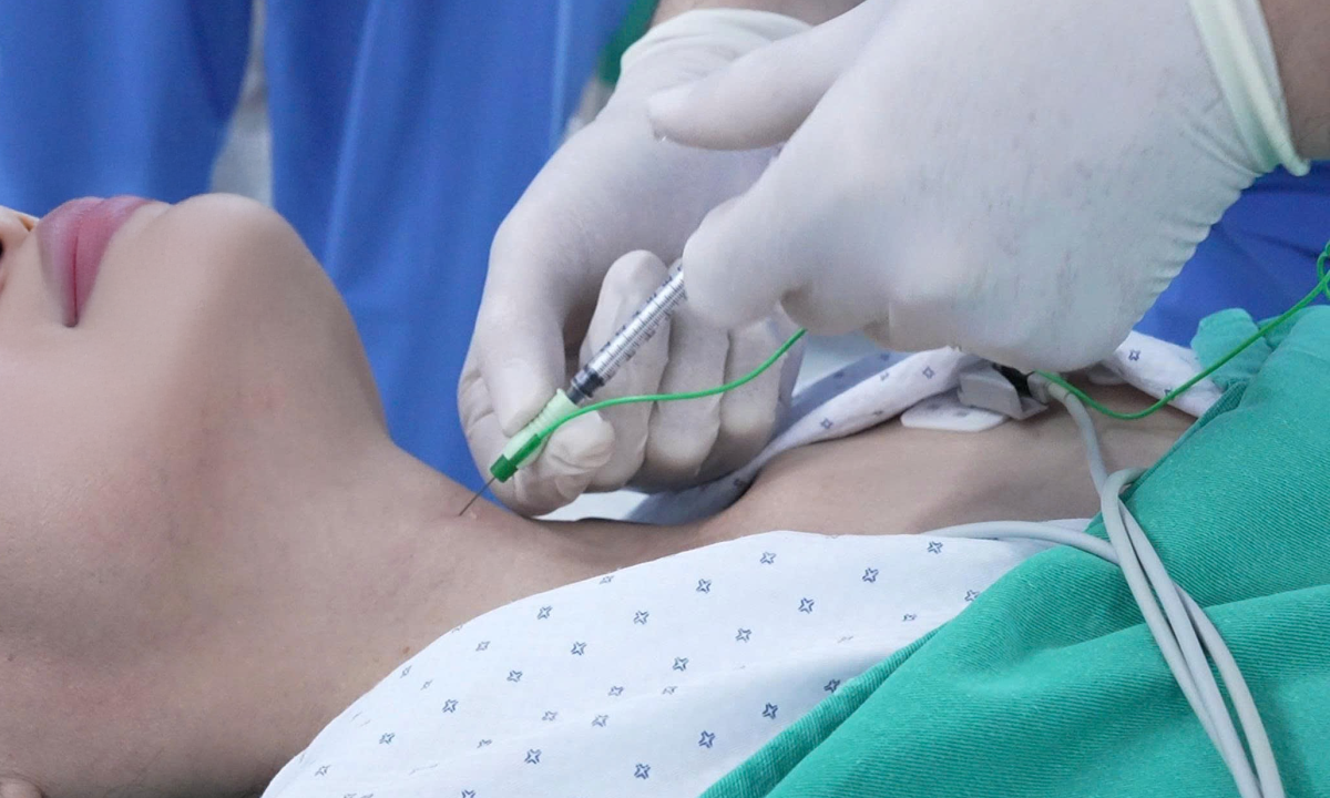 Hà NộiBà Lan, 52 tuổi, rối loạn giọng nói hơn một năm kèm giọng nghẹt, run, khó phát âm, được bác sĩ tiêm botox giảm co cứng cơ dây thanh.