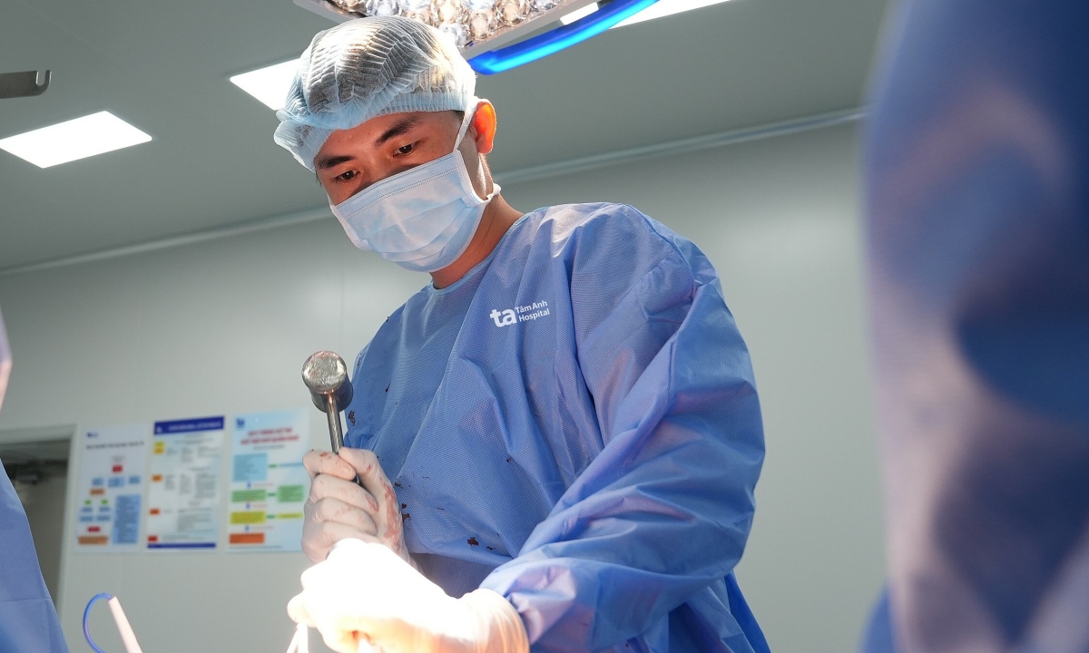 Bác sĩ Lưu thực hiện thay khớp cho bà Nga. Ảnh: Bệnh viện Đa khoa Tâm Anh