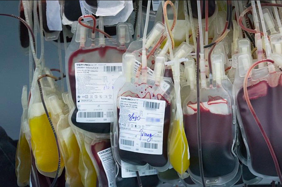 Các túi máu điều trị người bệnh. Ảnh: Chi Lê