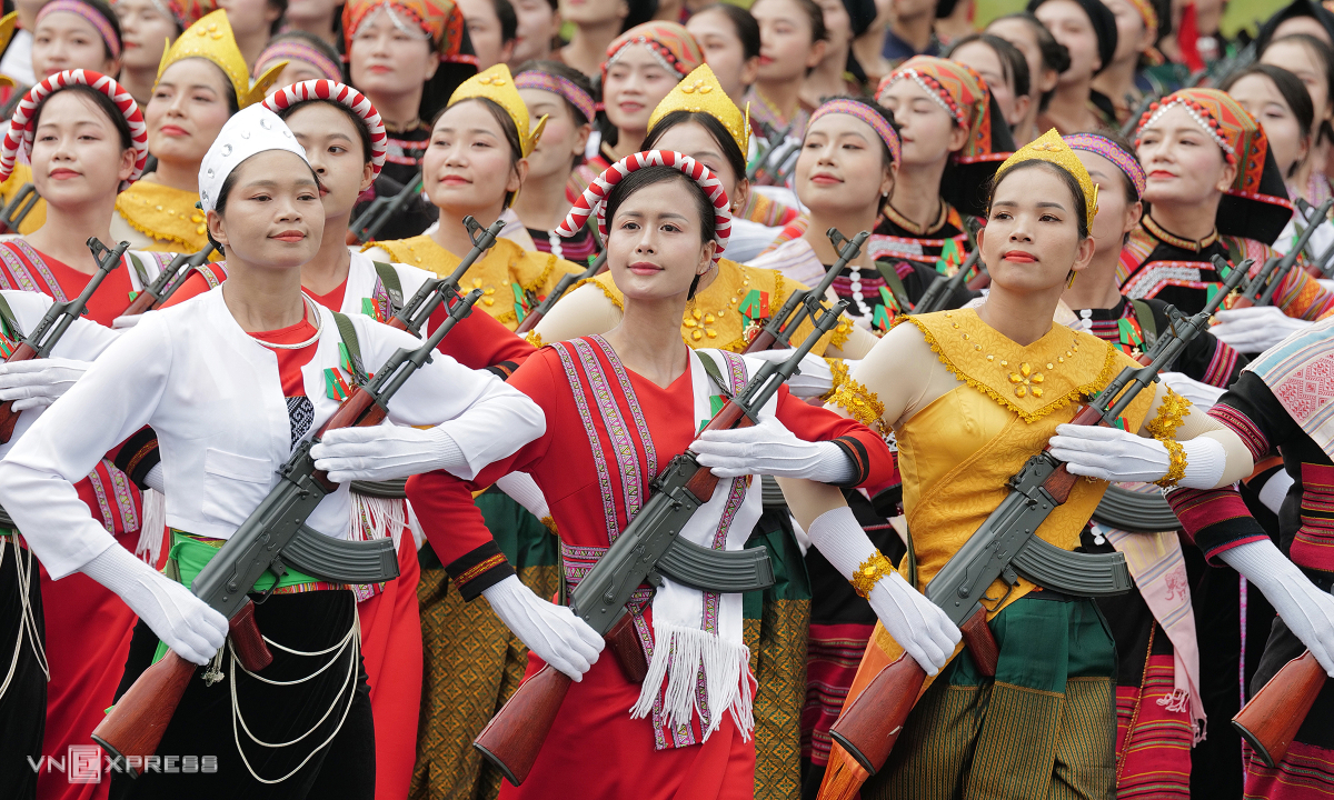 Các khối nữ quân nhân trên đường tổng duyệt A80. Ảnh: Ngọc Thành