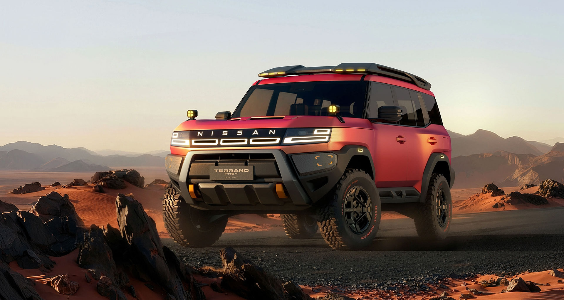 Khả năng off-road cũng được nhấn mạnh rõ rệt. Terrano PHEV được trang bị tấm chắn gầm cỡ lớn, móc kéo, đèn chiếu sáng chuyên dụng cho địa hình, cùng hàng loạt phụ kiện như thanh bảo vệ gầm, giá nóc và vòm bánh xe vuông vức sơn đen. Phía sau xe là bánh dự phòng cỡ lớn gắn ngoài, đặt trên một giá đỡ lớn vốn là chi tiết thường chỉ thấy trên những mẫu SUV thuần off-road.