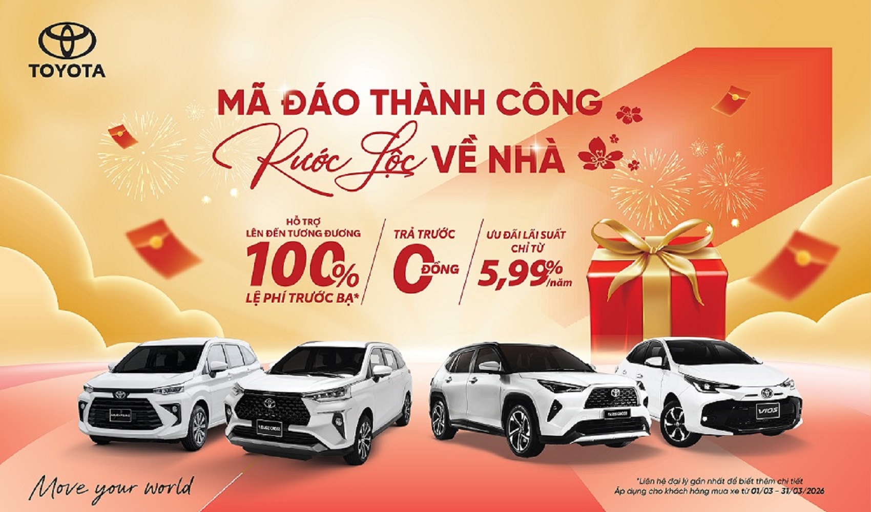 Thị trường ô tô Việt Nam trải qua hai tháng đầu năm 2026 không như mong đợi khi sức mua bất ngờ chững lại. Trong bối cảnh đó, nhiều hãng xe đã đẩy mạnh triển khai các chương trình khuyến mại với nhiều ưu đãi hấp dẫn nhằm kích cầu tiêu dùng cũng như gia tăng sức hút cho các mẫu xe của hãng. Toyota Việt Nam cũng không ngoại lệ. Trong tháng 3 này, TVM phối hợp cùng TFSVN và hệ thống đại lý trên toàn quốc triển khai chương trình khuyến mại hấp dẫn dành cho khách hàng mua xe mới.