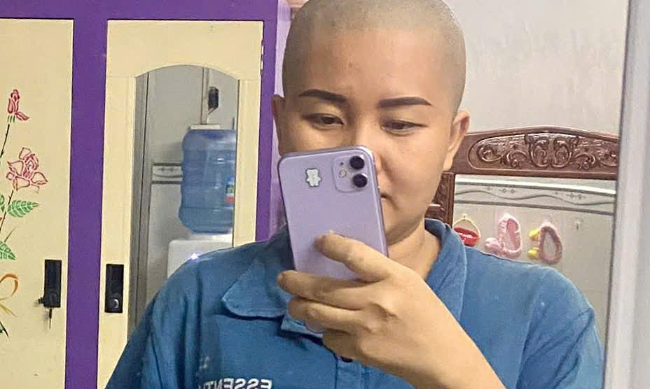 Mắc trầm cảm sau sinh, Huỳnh Như tự cạo trọc đầu. Ảnh: Nhân vật cung cấp