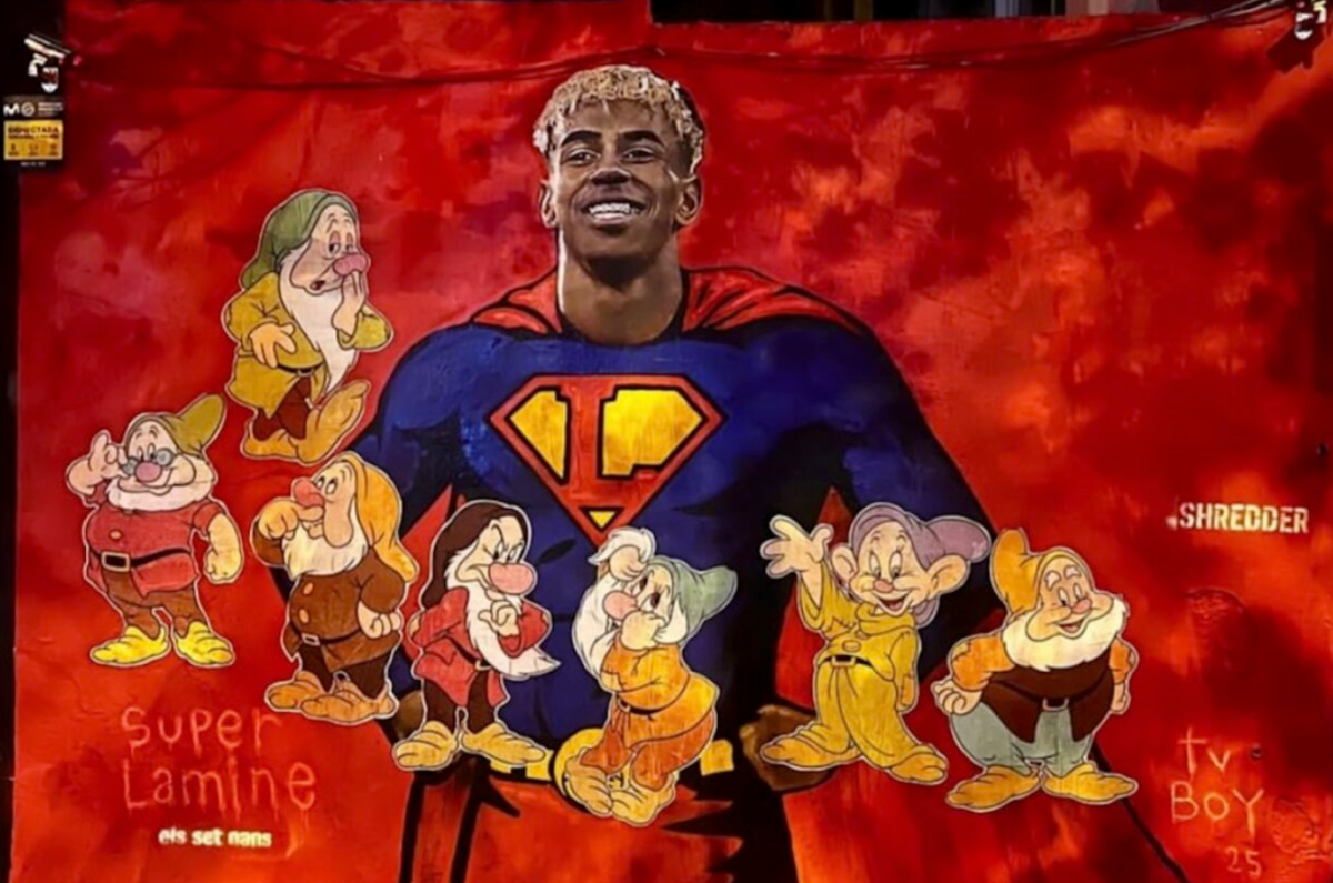 Tác phẩm được vẽ ở quảng trường Joanic, Barcelona, khắc họa Lamine Yamal trong trang phục siêu anh hùng với biểu tượng chữ “L” trên ngực thay cho chữ “S”, nhằm ám chỉ tên của tiền đạo cánh người Tây Ban Nha.
