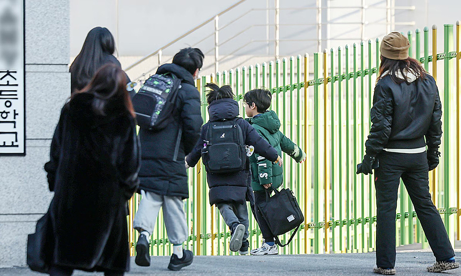 Phụ huynh đưa con đi học tại một trường tiểu học ở thành phố Seoul, Hàn Quốc. Ảnh: Chosun Biz