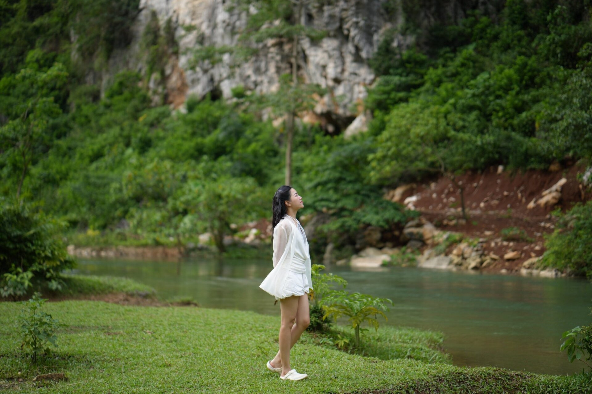 Nữ du khách yêu thích thung lũng xanh mướt với những mỏ nước mát lành