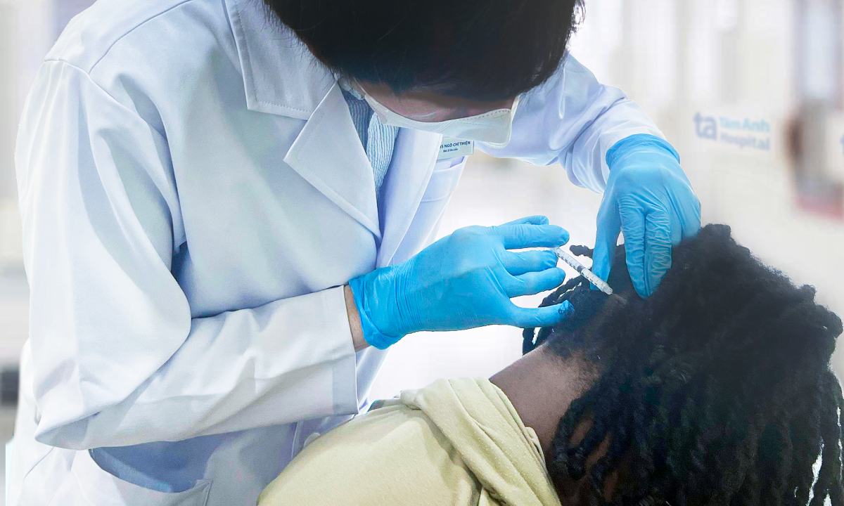 Bác sĩ tiêm hoạt chất triamcinolone điều trị sẹo lồi cho anh Jeffrey. Ảnh: Bệnh viện Đa khoa Tâm Anh