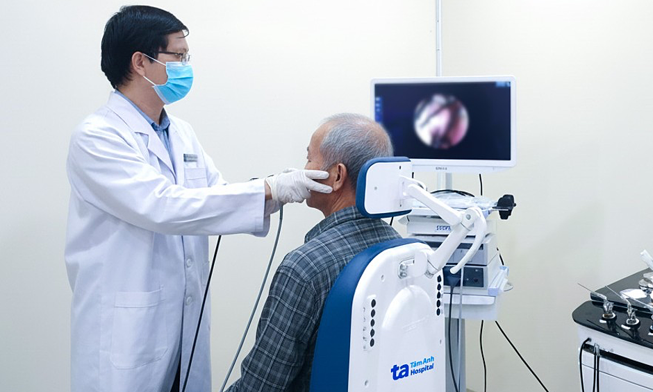 Bác sĩ Phát nội soi mũi cho ông Lăng. Ảnh: Phòng khám Đa khoa Tâm Anh Quận 7