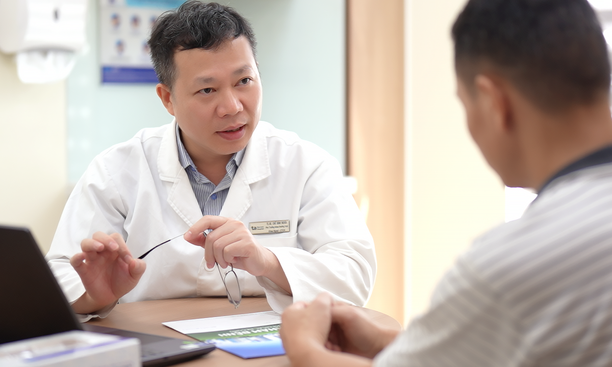 Bác sĩ Nghĩa giải thích kế hoạch mổ 3D cho bệnh nhân. Ảnh minh họa: Bệnh viện Đa khoa Tâm Anh