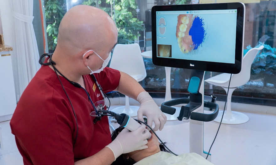 Hệ thống máy quét trong miệng được ứng dụng trong quá trình tư vấn, giúp bệnh nhân quan sát trực quan tình trạng răng miệng Ảnh: Nha khoa Như Ngọc