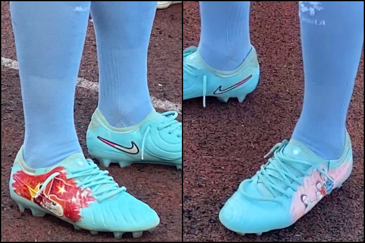 Trong buổi tập chiều 14/11, Đỗ Duy Mạnh đã thu hút sự chú ý với một đôi giày được “custom” độc đáo, in những hình ảnh mang ý nghĩa sâu sắc. Khi được hỏi về đôi giày, đội trưởng tuyển Việt Nam đã không ngần ngại chia sẻ về nguồn động lực mà anh luôn mang theo bên mình.