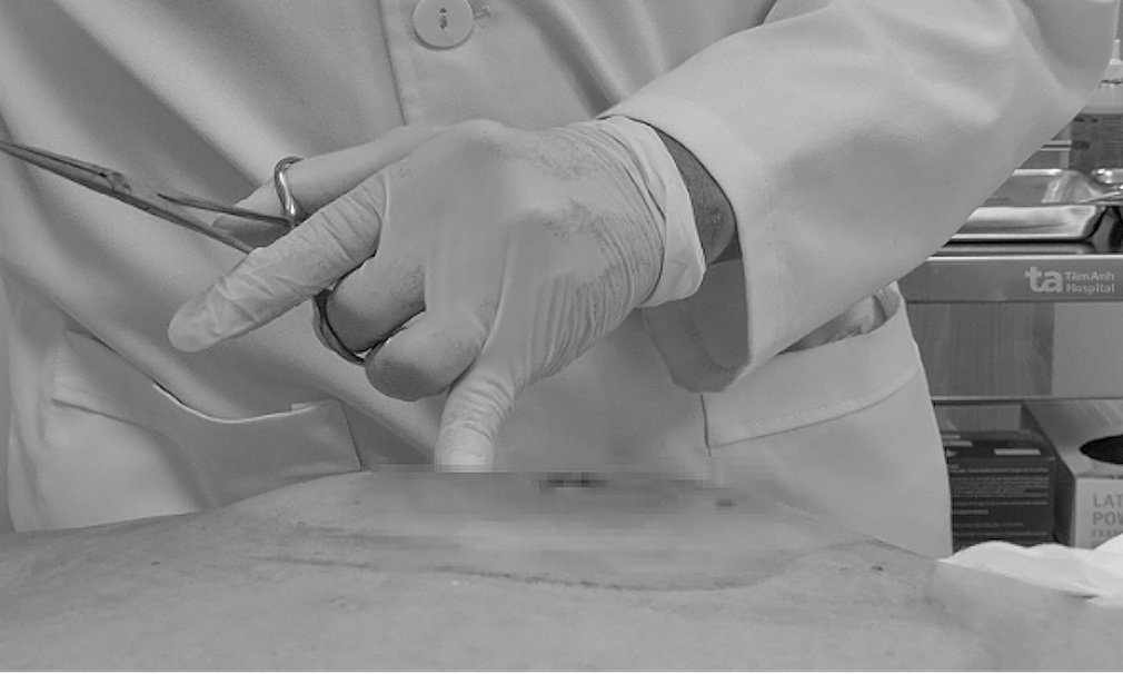 Sau khi mức toan ceton về ngưỡng bình thường, bác sĩ xử lý ổ nhiễm trùng trên lưng. Lúc này, tình trạng viêm mô tế bào đã khá nặng, bác sĩ rạch dẫn hút một lượng dịch mủ lớn khoảng 200 ml, cắt lọc các mô hoại tử, ngăn hoại tử lan rộng.
