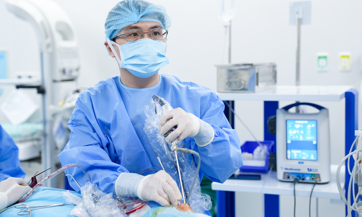 Bác sĩ Tường phẫu thuật mũi xoang cho một người bệnh. Ảnh minh họa: Bệnh viện Đa khoa Tâm Anh