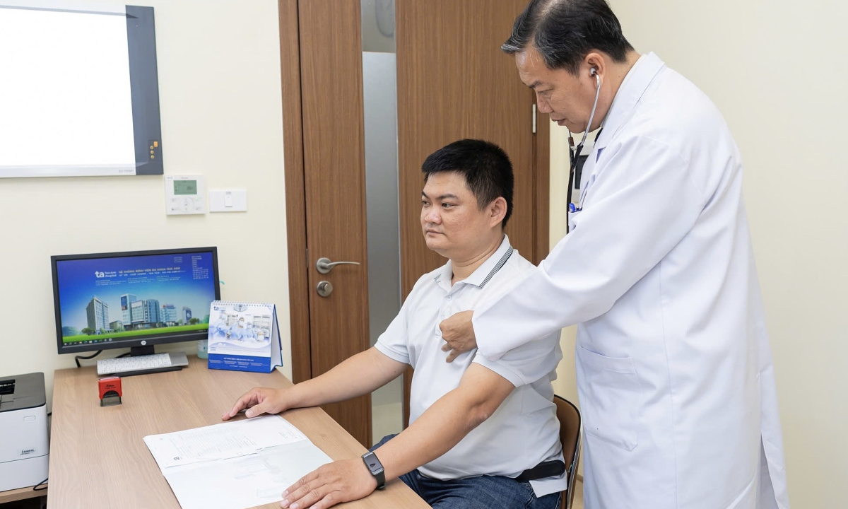 Bác sĩ Quang Minh đang khám cho người bệnh. Ảnh minh họa: Bệnh viện Đa khoa Tâm Anh