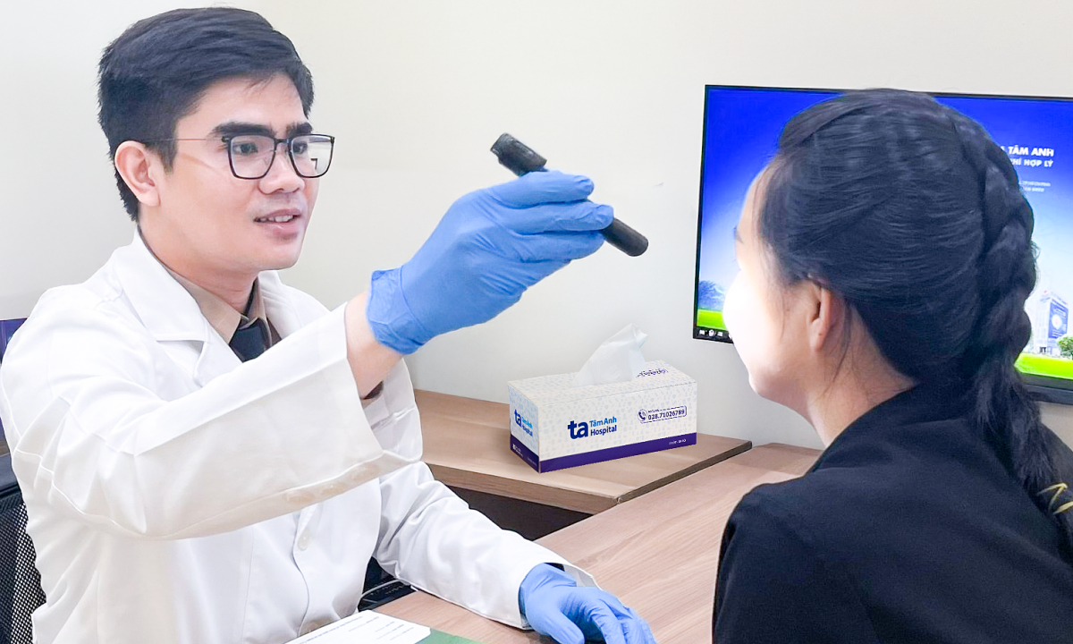 Bác sĩ Trí kiểm tra tình trạng da cho người bệnh. Ảnh minh họa: Phòng khám Đa khoa Tâm Anh Quận 7