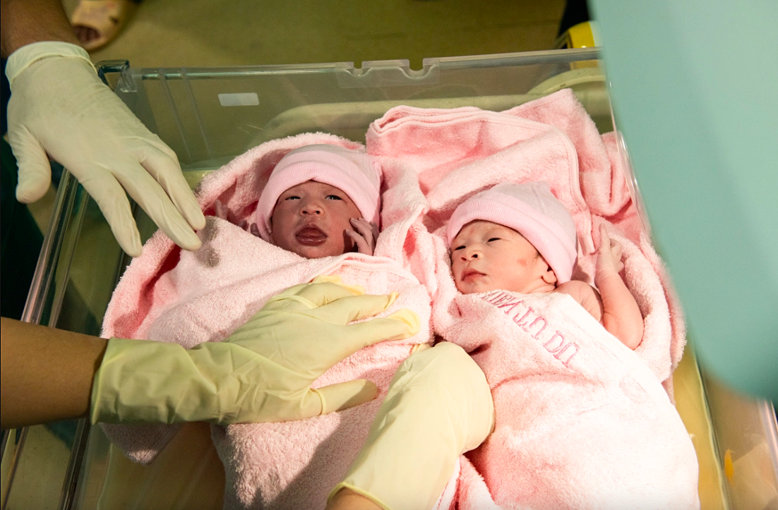 Hai em bé chào đời dịp giao thừa năm 2025. Ảnh: Ngọc Ngân