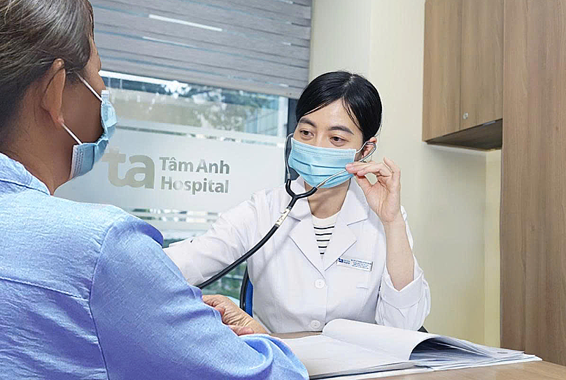 Bác sĩ Quỳnh Ngân khám cho bà Bình. Ảnh: Bệnh viện Đa khoa Tâm Anh