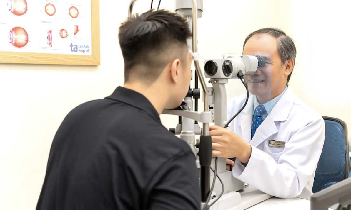 Bác sĩ kiểm tra mắt cho nam thanh niên. Ảnh minh họa: Bệnh viện Đa khoa Tâm Anh