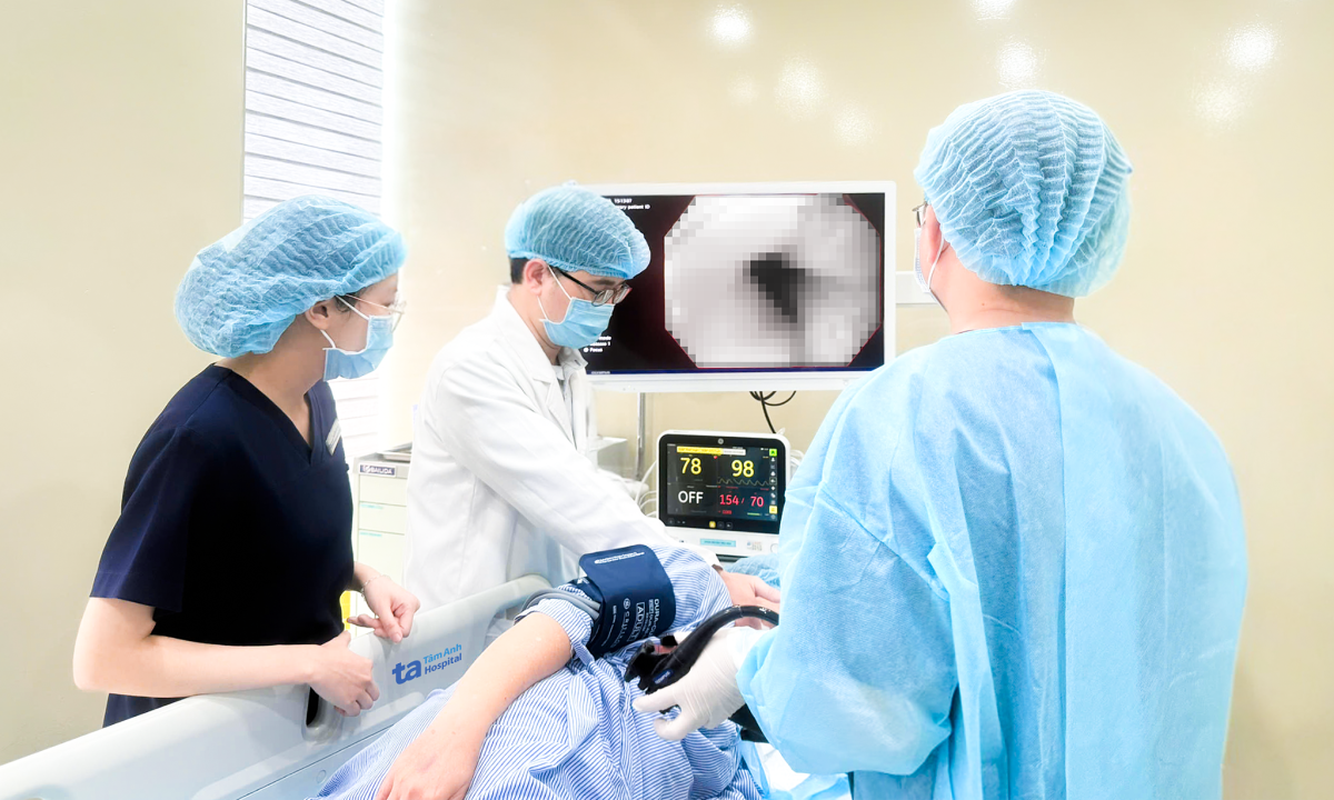 Bác sĩ nội soi cho người bệnh bị loét dạ dày. Ảnh minh họa: Bệnh viện cung cấp