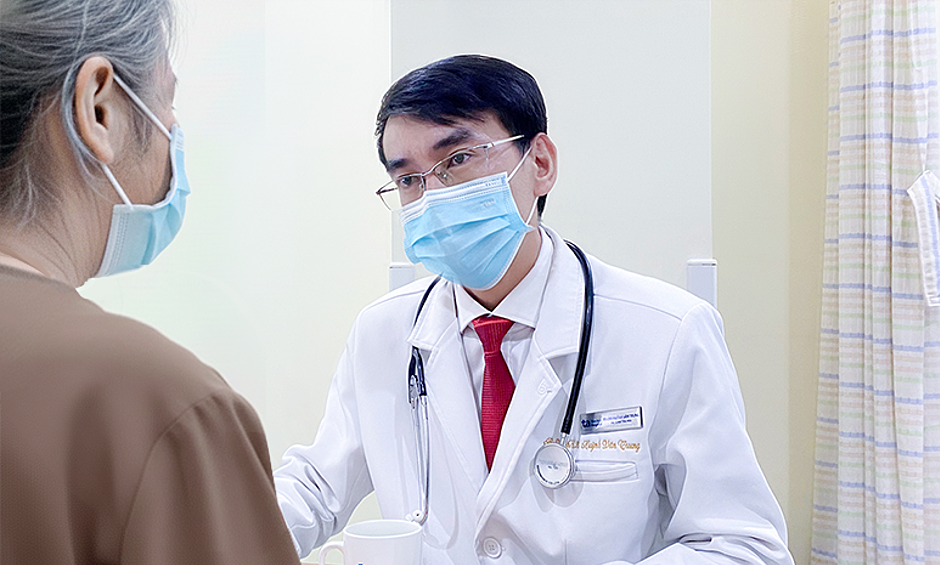 Bác sĩ Trung khám cho bà Ngà khi tái khám. Ảnh: Bệnh viện Đa khoa Tâm Anh