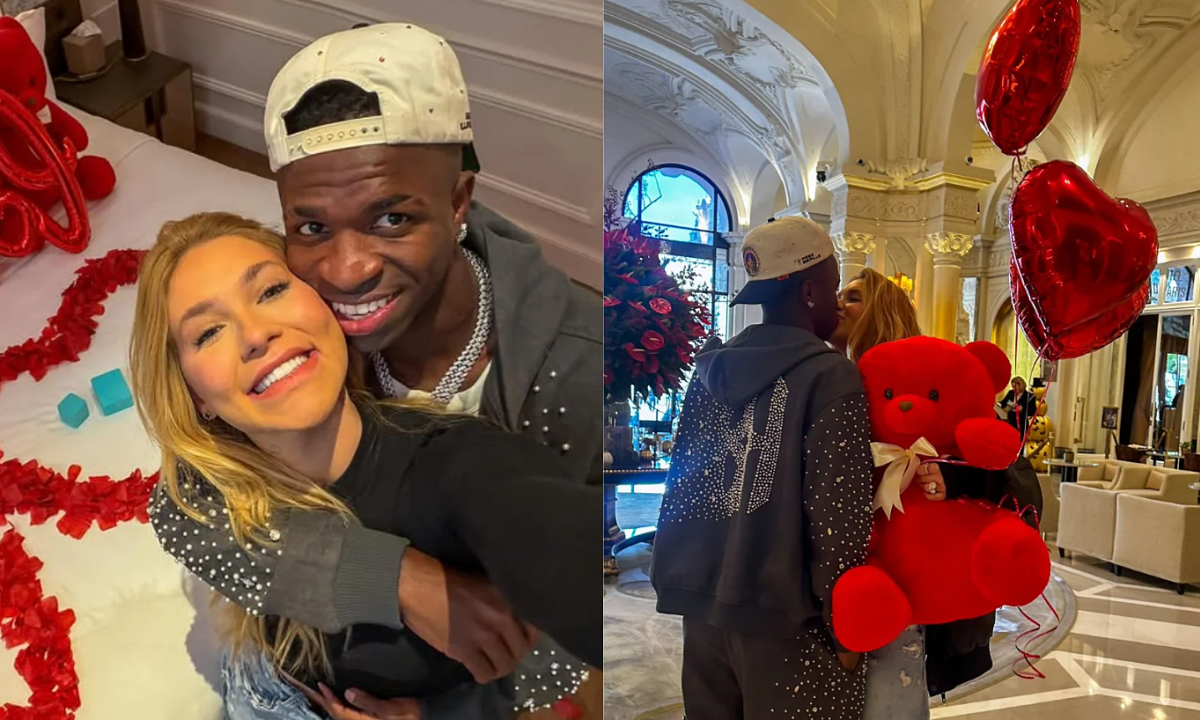 Vinicius và Fonseca cùng đăng tải hình ảnh trong căn phòng khách sạn tại Monaco, được trang trí bằng cánh hoa hồng xếp hình trái tim và bóng bay ghi chữ “Love”.