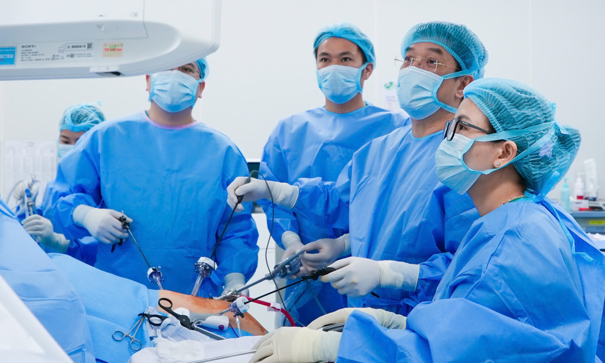 Ca mổ được truyền hình trực tiếp tới hội trường hội nghị, thu hút sự chú ý của các chuyên gia trong và ngoài nước. Ảnh: Vinmec