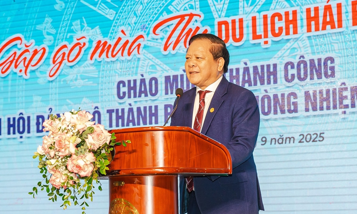 Ông Mai Xuân Thắng, Chủ tịch Hiệp hội Du lịch Hải Phòng, phát biểu ở một sự kiện vào tháng 9/2025. Ảnh: Hiệp hội Du lịch Hải Phòng