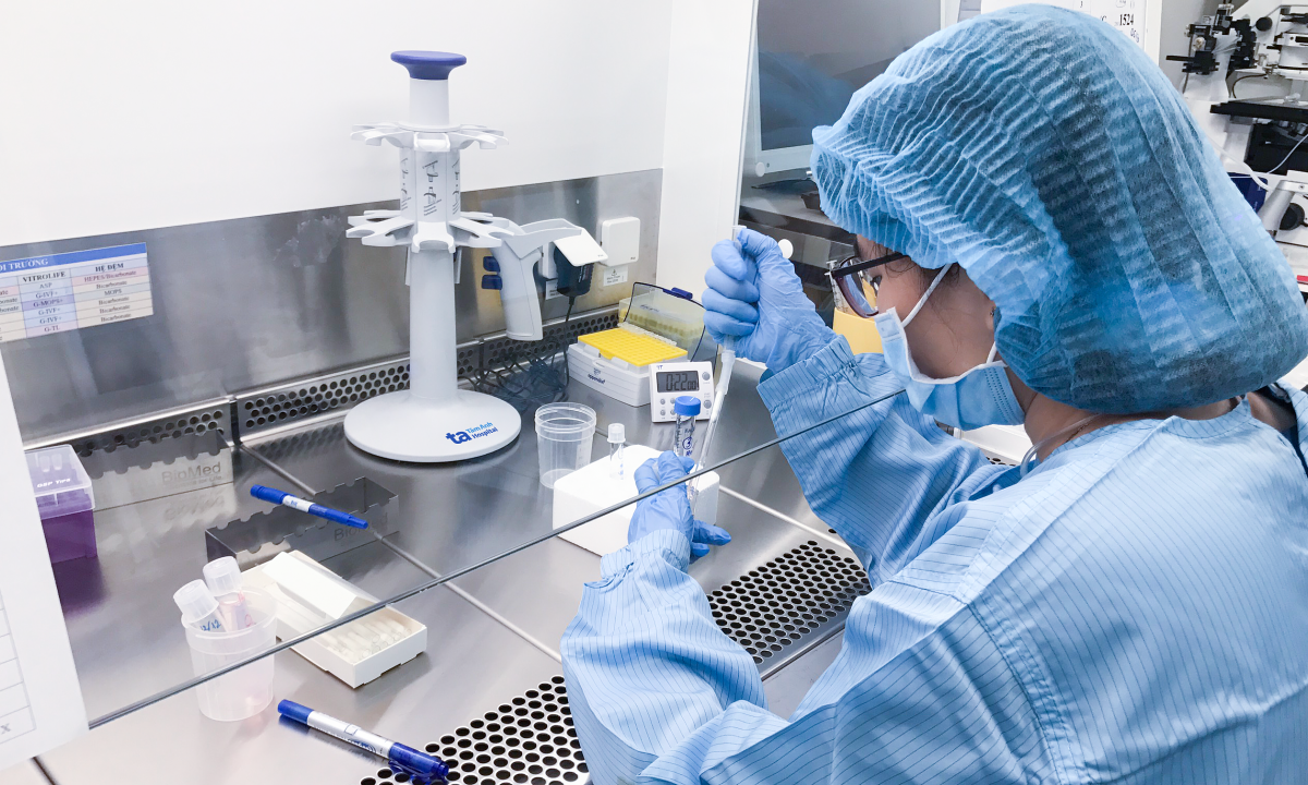Chuyên viên phôi học đang lọc rửa tinh trùng trước khi thực hiện IUI cho người bệnh. Ảnh minh họa: Bệnh viện Đa khoa Tâm Anh – Quận 8