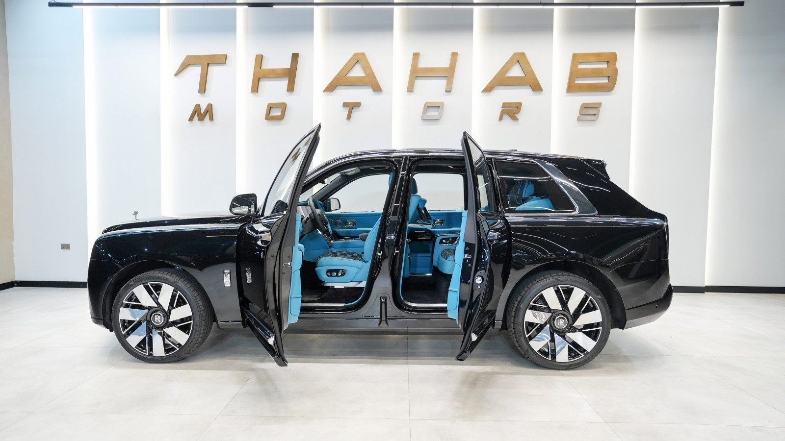 Khoang nội thất được đơn vị nhập khẩu lựa chọn tông màu xanh dương lạ mắt, kết hợp cùng màu đen thay cho kiểu màu nâu da bò hay màu đen truyền thống được nhiều đại gia lựa chọn ở Cullinan Series I.