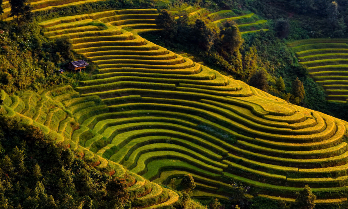 Sơn LaCuối tháng 9, ruộng bậc thang Xím Vàng chín vàng, trải dọc các các sườn núi và thung lũng.