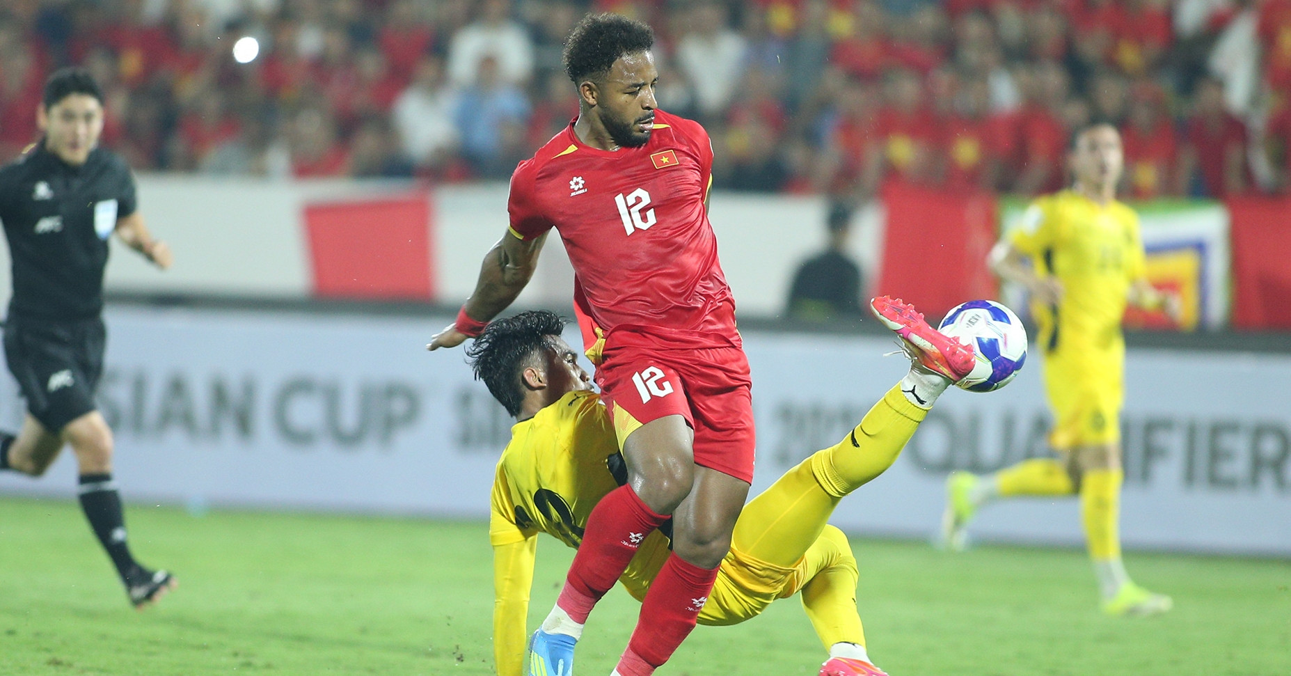 Phút 25, từ khoảng cách khoảng 30m, Hoàng Đức tung cú sút rất căng và đẹp mắt đánh bại thủ môn Syihan Hazmi nhưng lại bị cột dọc từ chối. Nếu thành bàn, đó là một siêu phẩm của số 14.